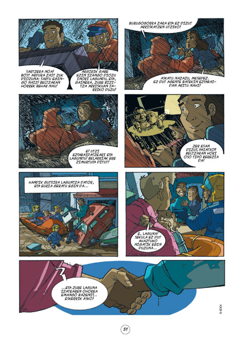 Ekimen honen euskarri nagusia komiki bat da. Komikiaren orrialdeetan, neskek eta mutilek pertsonaia eta istorio desberdinak aurkituko dituzte, eta horiek guztiek hiritartasunaren balioei,